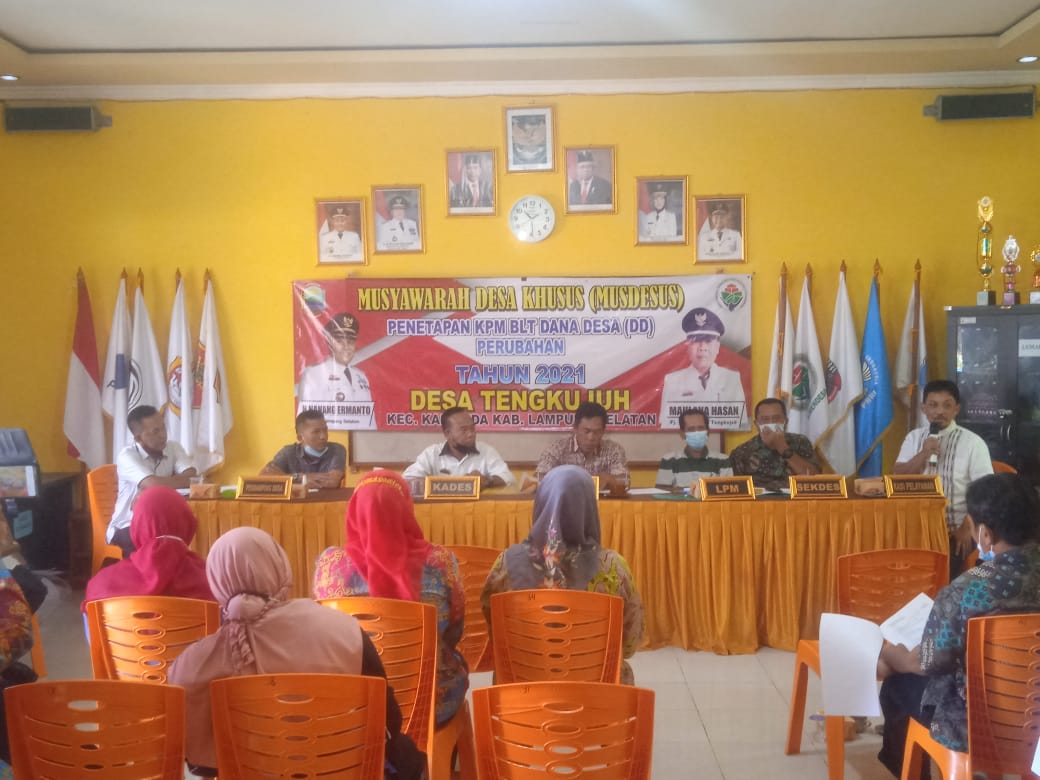 Pemerintah Desa Tengkujuh melakukan rapat Musyawarah Desa Khusus (Musdesus) terkait pemaparan perubahan Rancangan Anggaran Perubahan Belanja Desa (RAPBDES) tahap tiga dan penetapan KPM, BLT dan Dana Desa ( DD ) perubahan tahun 2021.