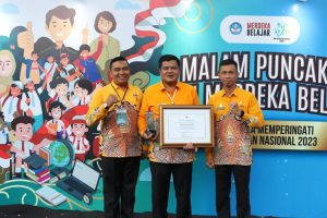LAMPUNG TENGAH, INDONESIA RI. Pemerintah Kabupaten Lampung Tengah menerima Penghargaan dari Kementerian Pendidikan Kebudayaan, Riset dan Teknologi katagori Penerima Anugrah Merdeka Belajar Kategori Pemerintah Daerah, Subkategori ” Pencegahan 3 Dosa Besar Pendidikan” Dimana langsung diterima oleh Bupati Lampung Tengah Musa Ahmad yang diserahkan oleh Menteri Pendidikan Kebudayaan, Riset dan Teknologi Nadiem Makarim bertempat di Kawasan Candi Prambanan Yogyakarta pada Senin 29 Mei 2023. Dalam kesempatan tersebut turut hadir Kepala Inspektorat, Plt. Kepala Bappeda, serta Sekertaris Pendidikan.