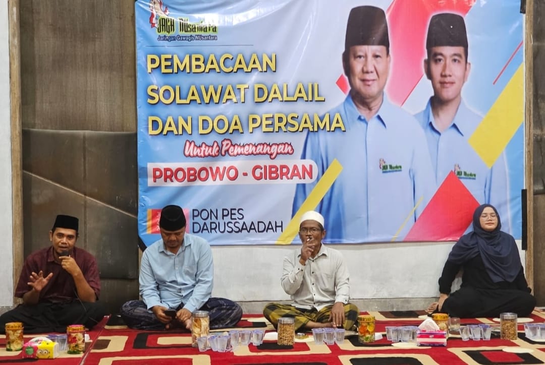 Sejumlah pengurus dan tokoh kyai dan Gus turun menghadiri doa dan sholawat Dalail yang ditujukan untuk kemenangan Capres dan cawapres Prabowo Gibran.